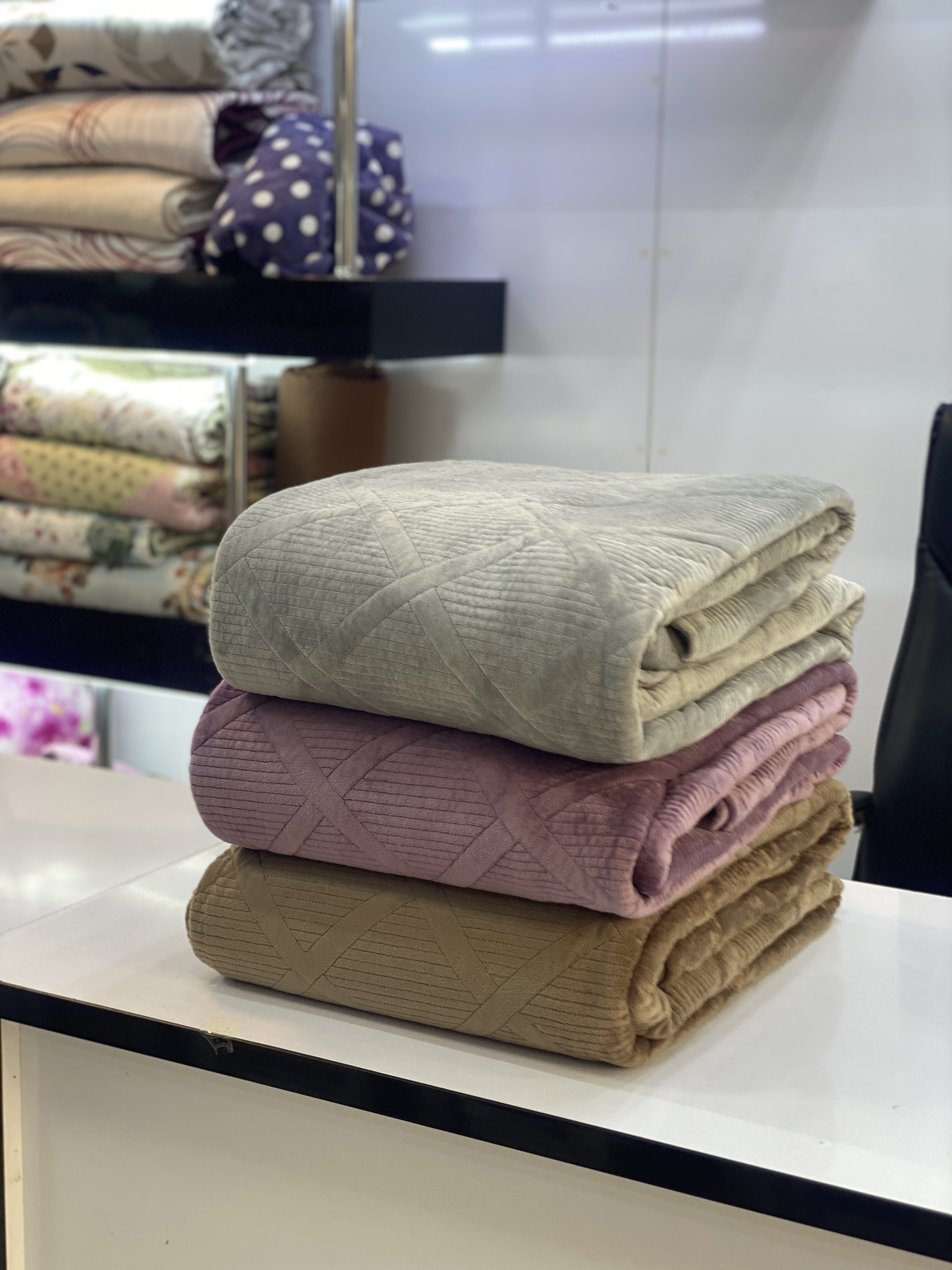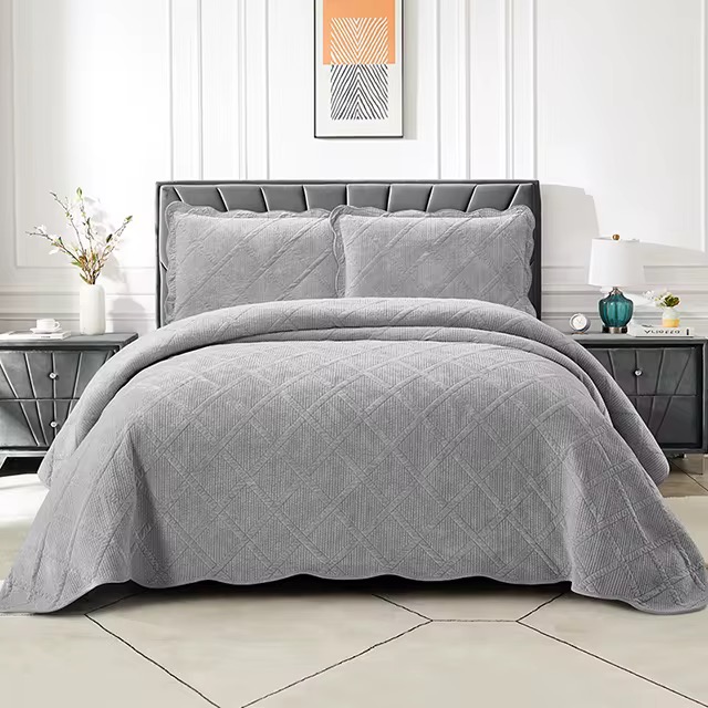روتختی پنبه دوز ۲ نفره ۳ تیکه مخمل برجسته لوزی
