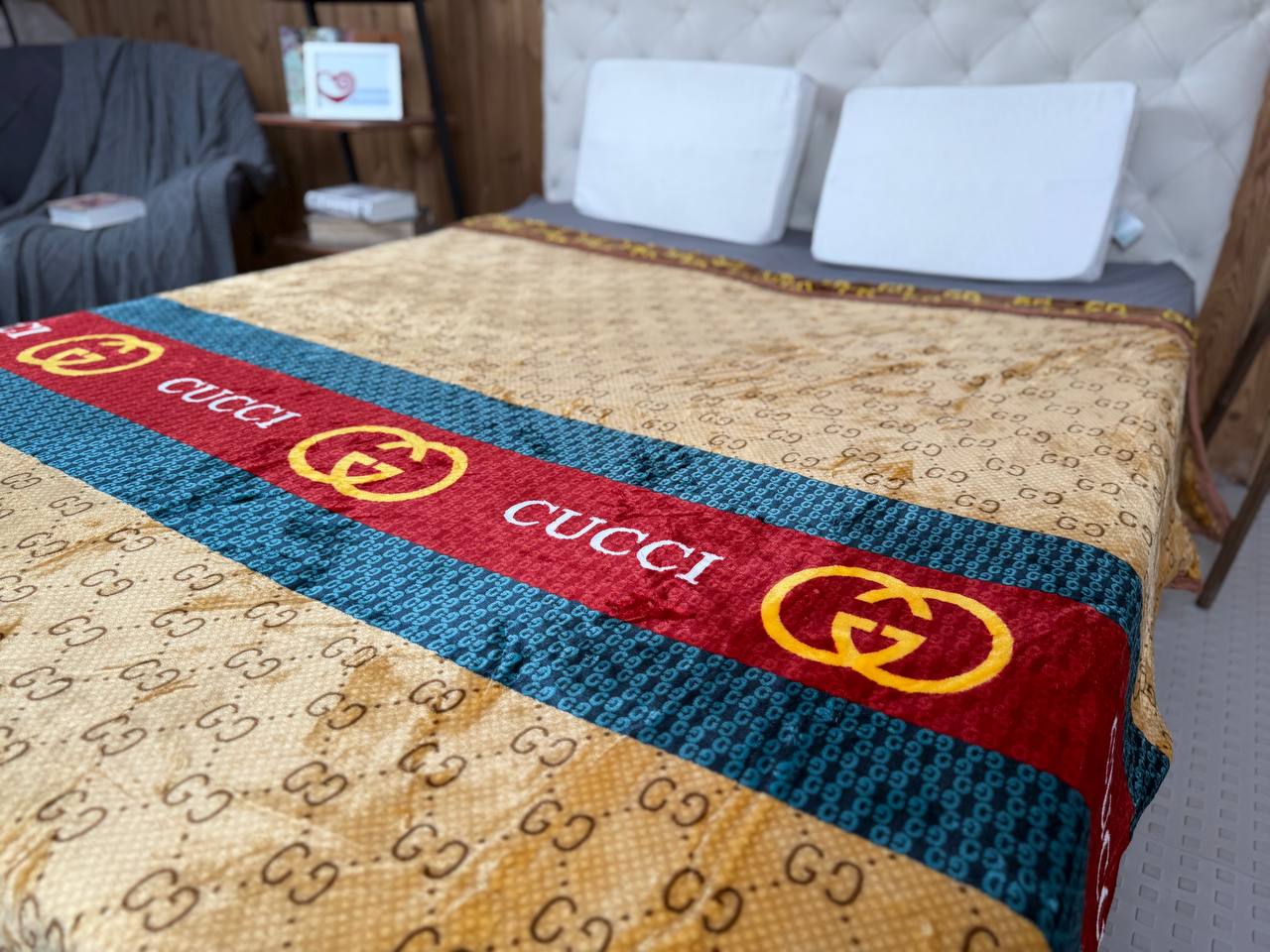 پتو حوله ای چهارفصل طرح برند دورو ۲نفره برند sun hai کد ۱۹(گوچی طلایی)