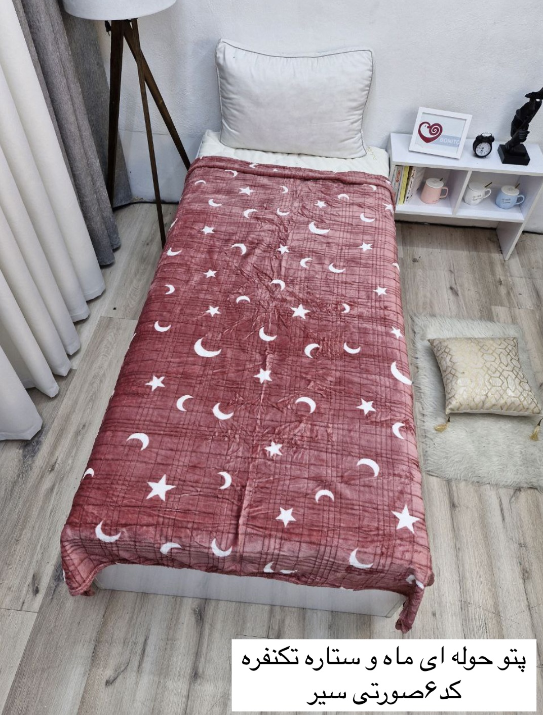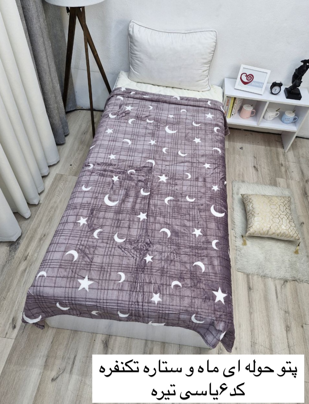 نوع محصول: پتوی مسافرتی حولهایطرح: ماه و ستاره سفیدجنس: حولهای ابعاد:حدودا ۱۵۰در۲۱۰وزن:حدودا ۹۰۰گرممناسب برای: سفر، خانه، خودرو، مهمان، پیکنیک---ویژگیها و مزایا1. سبک و قابل حملبه دلیل وزن کم، به راحتی میتوان آن را در کیف، چمدان یا خودرو قرار داد.2. جنس نرم و لطیفبافت حولهای باعث نرمی و لطافت ویژه میشود و برای پوست حساس مناسب است.3. گرم و در عین حال خنکپذیردر فصول مختلف قابل استفاده است؛ گرما را حفظ میکند ولی باعث تعریق زیاد نمیشود.4. طرح جذاب و آرامشبخشطرح ماه و ستاره باعث ایجاد حس آرامش و زیبایی در فضا میشود.5. قابل شستوشو و بادوامامکان شستوشو با ماشین لباسشویی یا دست بدون تغییر رنگ و بافت.6. کاربرد چندمنظورهمناسب برای استفاده به عنوان پتوی مسافرتی، پتوی مهمان، پتوی مهد کودک یا حتی زیرانداز پیکنیک.---نکات نگهداریشستوشو با آب ولرم و شوینده ملایم.استفاده نکردن از سفیدکنندهها برای حفظ رنگ و طرح.خشککردن در سایه یا با دمای پایین خشککن.اتو کشیدن با حرارت کم در صورت نیاز.