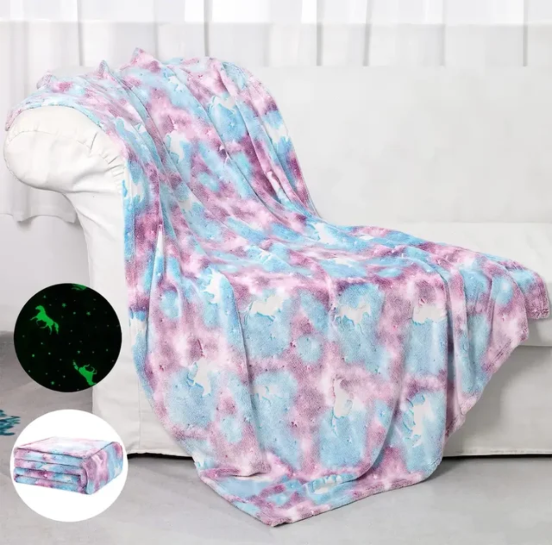 پتو مسافرتی مدل شبنما ۱نفره کد ۲۵(یونیکورن آبرنگی)