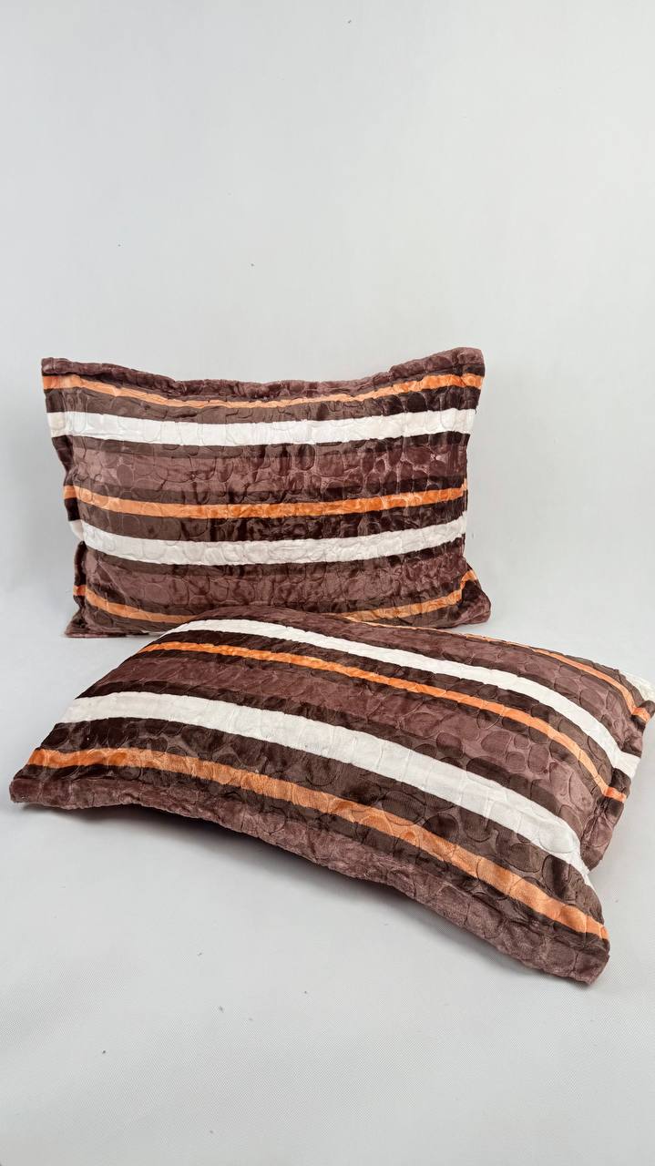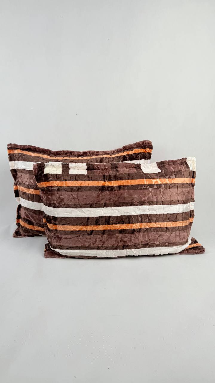 روبالش مخمل بلک ایگل بسته 2 عددی طرح راه راه قهوه ای کد 13
