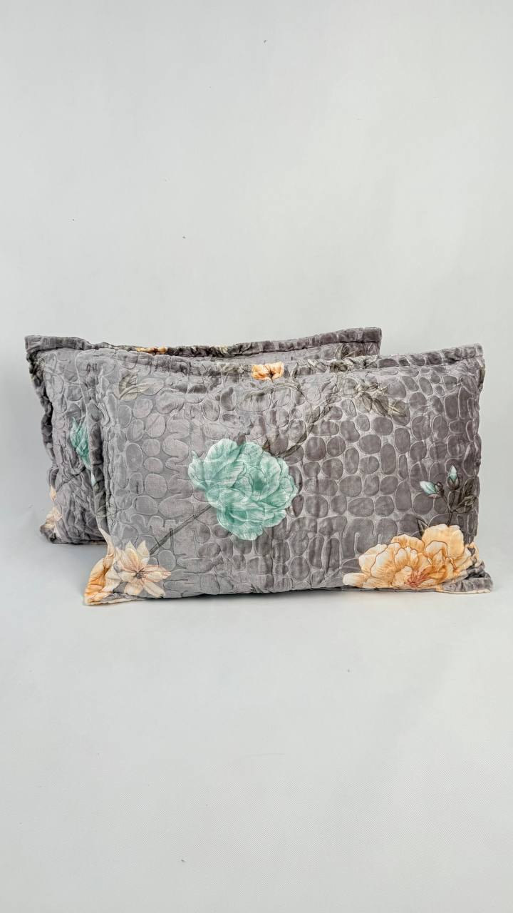 روبالش مخمل بلک ایگل بسته 2 عددی طرح طوسی گل سبزابی کد 16